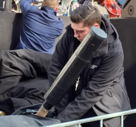 Outside, work was still in full swing on the covered stage, and an hour before the concert began, rehearsals and a sound check were held. To our surprise we saw 12 musicians on stage instead of the 5 members of the Salon Orchestra. André personally checked that all the microphones on the instruments were working. Oh, there were several confetti canons too!