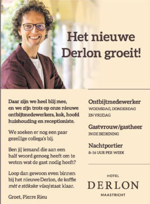 Hotel Derlon, Onze Lieve Vrouweplein 6, Maastricht. Vacatures@derlon.com