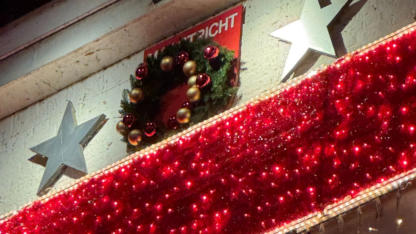 decorations of red ribbon and Christmas lights, while André Rieu documenting the momentous and festive