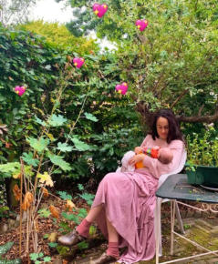 In August, she gave birth to a son,