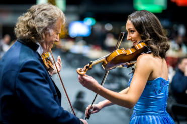 We saw four new faces in the orchestra and one new violinist in a blue dress. André never introduces new