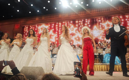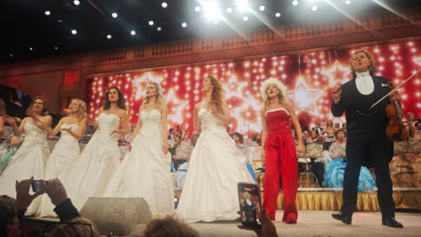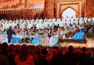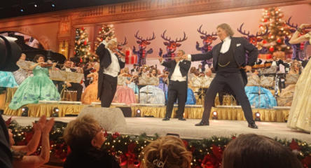 De Limburger, by Ivar Hoekstra December 7, 2025 Photos: Marcel van Hoorn, ARP Translation by Diana D. Le Reindeer dancing the "Macarena", but also a quiet Polish Christmas song: it's all possible in André Rieu's Christmas palace Between Sinterklaas (Dec. 5th) and December 24th, it's the usual Christmas appetizer: André Rieu's concerts at the MECC. And the dishes vary just like a student Christmas dinner: from haute cuisine to greasy snacks. Because where else can you hear the "Macarena" at a Christmas concert, but also a lesser-known but beautiful Polish Christmas carol? Free tip for those planning to take the train from Utrecht to Maastricht the morning after December 5th: make sure you're on the platform early, because the train will be packed with people attending André Rieu's first afternoon Christmas concert. From Groningen to Friesland, everyone wants to enjoy the Christmas appetizer served by Rieu now that Sinterklaas has left. Striking: from the conversations in the crowded compartment, it's clear that this is the first time for many. "We've been to his Vrijthof concerts a few times, but now we're also going to see his Christmas show," says a woman with a distinct Twente accent. This will reinforce Rieu's belief that his MECC concerts have room for growth and that the ambition to expand from six to eight, and possibly even ten, Christmas concerts isn't so surprising. Regional plague For those who've been before, the ingredients are familiar. The Platin Tenors are there, of course, there's waltzing to the sounds of "An der schönen blauen Donau", dancing ice-skating couples fill the rink, and when "Let It Snow" plays, much fake snow flutters from the ceiling onto your shoulders. Of course, Rieu also delivers a regional jab: "Imagine you're at a Christmas market in a village, Sittard or Heerlen or something, and suddenly you see the entire Johann Strauss Orchestra and the Mastreechter Staar arrive and start playing Christmas carols!" Naturally, this causes cheers among the Maastricht visitors and cheers from everyone who comes from outside the region. So, a lot of familiar fare, but every year it's still a little different, because Rieu also understands that you can't just serve the same delicacy every year. So, for the first time, the men of the Mastreechter Staar will be present at a Rieu Christmas concert. When those 120 men, all in white suits and torches in hand, enter the hall, it's just as impressive as the national team presentations at the Olympic Games. And it's always wonderful to hear these men sing a Christmas classic like Tochter Zion. But the biggest surprise before the intermission is the "guardian angels" from Bavaria, announced by Rieu: the Perlseer Dirndl. Three blonde sopranos bring the MECC to a complete standstill with a Polish Christmas song titled "Lulaize Jezuniu." It's delivered so quietly and sung so beautifully that you could hear a pin drop. The three switch from Polish to Dutch as easily as they sing "Sleep Now My Jesus". Two moving Christmas songs that counterbalance the somewhat carnivalesque quality of the show, especially in the last half hour. After all, a summer hit like Los del Rio's "Macarena" at a Christmas concert is like swapping the mulled wine on the table for bottles of Corona beer. Hilarious But strangely enough, it works, because ten thousand people go absolutely wild when the now quite elderly Spanish singers get the crowd going with that funny dance everyone mastered in the summer of 1993. It gets absolutely hilarious when reindeer in Christmas sweaters, who also know how to dance the "Macarena", (with Los del Rio) appear on the large LED screen behind the stage. From a Polish Christmas song to reindeer dancing the "Macarena", Rieu can do it all. The final chord, just like the past two years, is Emma Kok singing the Christmas hit " All I Want for Christmas." The two moments Emma Kok appears, before the intermission she sings "Let It Snow", most of the cell phones ring out, because Emma Kok is beloved and it will be a bitter pill to swallow if she's no longer with us next Christmas. But if Rieu can replace her with a soprano or sopranos who sing such beautiful Polish Christmas songs, Kok's departure will be bearable. Little André: Rieu presents first children's book He'd been working on it for a while, and on Saturday evening at the MECC, after the first of six Christmas concerts, the first copy of André Rieu's children's book, "Little André and the Secret of the Shadow," was presented. It was a long-cherished dream of the violinist, says his son Pierre. "My father and his orchestra treat the world to music and a fairytale atmosphere, so everyone can enjoy it. But the concerts almost always take place in the evening – and by then most children are already in bed. We received more and more messages from parents and grandparents: how their children and grandchildren were watching the images with wide eyes, moved or touched by the music and the atmosphere. That's how the idea for a children's book was born." André Rieu also wants to encourage reading among children with this book. "Marjorie and I loved reading to our sons in the evenings. With this children's book, Pierre, Marjorie, and I want to inspire you all to read together again, because those moments last a lifetime!" The hardcover book contains approximately 144 pages with 75 colorful illustrations and is available in six languages from the moment of publication: Dutch, English, German, Spanish, French, and Polish. In addition to the book, fourteen Little André PlayAlong Books will also be published for instruments such as violin, flute, trumpet, or piano, allowing you to make virtual music with the Johann Strauss Orchestra and André Rieu. The first edition includes sheet music for well-known Christmas carols. To read more about the Little André book, click HERE. To read more about the preparations for the Christmas concerts (which started in May 2025!!) click HERE