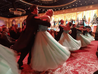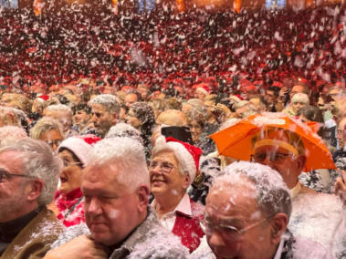 Sitting in the 12th row, we were completely snowed under. We were also hit by the avalanche afterwards. A hilarious experience! Yes, we enjoyed the white Christmas indeed!