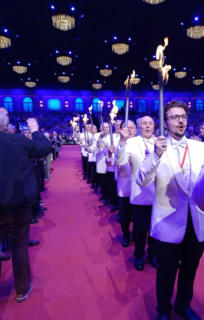 Highlights of the Christmas Concert: Photos by Marcel van Hoorn (ARP) and several fans. 120 members of the male choir Mestreechter Staar, enter the hall with torches.