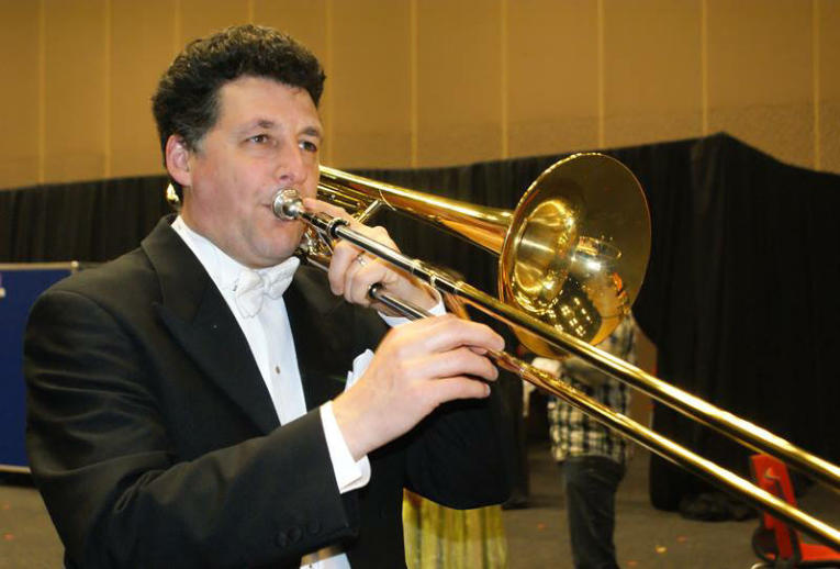 March 14th 2014.Music makes youngsters smarter. Translation: Entia Shadwell. On Sunday, March 16, 2014, there will be a children's concert in Roermond’s Cuypershuis. “Research has indicated that children who make music have higher IQ’s, are more sociable and adjust to discipline with more ease," says Ruud Merx, trombonist with André Rieu. He is the main promoter of music in Limburg. Eighty percent of all people have musical ability, and you do not have to be able to read notes to make music. Ruud Merx (44) is the trombonist in the orchestra of Andre Rieu while his wife is violinist Alina Lin (Jong). Recently, Merx became the Limburg ambassador for the Music Makes Smart (Muziek maakt slim) Foundation (MMS). However, he himself prefers to use the term “music promoter”. Merx is convinced that children - especially those between the ages of 6 and 14 years - are smarter and more sociable and develop a positive self-image as they learn to make music. “And it does not necessarily have to be heavy classical music; singing together or drumming is also making music.”This statement makes sense. Someone who plays an instrument is visually engaged (reading notes), auditively engaged (hearing), motor skills are involved (hands) as well as touch (feel). According to Merx these aspects all contribute towards a better connection between the neurons of the left (ratio, intellect) and the right (emotion) hemispheres of the brain. MMS relies on scientific research from Canada, America and Switzerland, but especially on that of the German music educator, Professor Hans Bastian. The professor followed the progress of a group of elementary school students in Berlin for a period of six years. Part of the group had music lessons and the rest not. Eventually, the music-making group developed a higher IQ and also showed improved analytical and abstract reasoning. The joint music-making led to a strengthening of the team spirit and improved discipline (follow the conductor / teacher), which in turn had a (positive) impact on their social and emotional skills.Merx is a firm supporter of the ‘School without notes’ project, which is being presented in a number of municipalities in North and Central Limburg. “Learning to read notes is usually a threshold rather than an incentive to play a musical instrument. I think you should expose children to music in combination with playing to a much larger extent, as is being done in the Suzuki violin lessons where students initially – in a group – attempt to make music based on hearing alone. That enthusiasm and the support of parents lead to the children with real talent and a passion for music coming to the fore.”On Sunday (at 1.30PM), the wind quintet, Music4Kids, will perform the classic piece Carnival of the Animals by Camille Saint-Saëns at the Cuypershuis in Roermond. The animals will be represented by a flute, oboe, horn, bassoon and clarinet. Merx: “A great initiative to familiarize children with classical music; especially if they allow the kids to blow (play) an instrument.” Ruud Merx (44) is the musical promoter of the Music Makes Smart foundation that wants to convince children and parents alike that making music will make the kids smarter and more sociable.